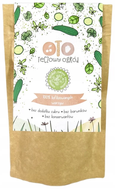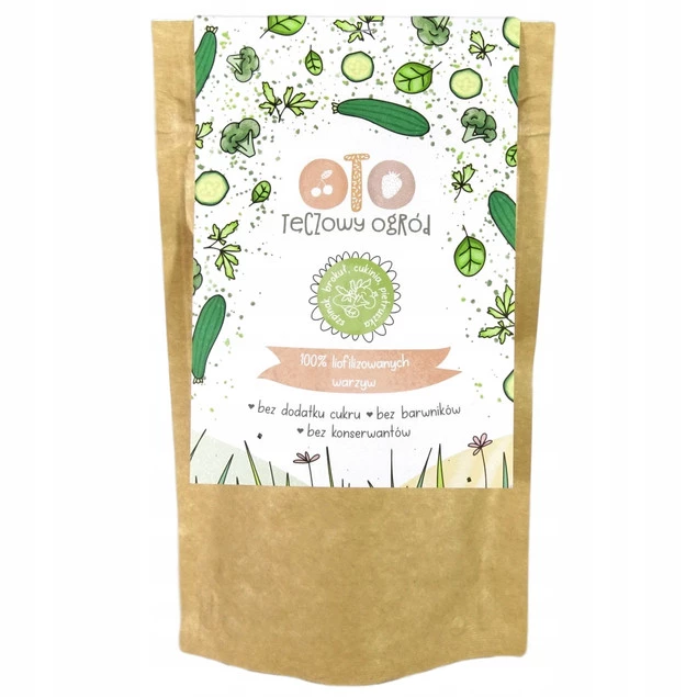 Składniki: liofilizowany szpinak 25%, liofilizowany brokuł 25%, liofilizowana cukinia 25%, liofilizowana pietruszka 25% (w proszku)