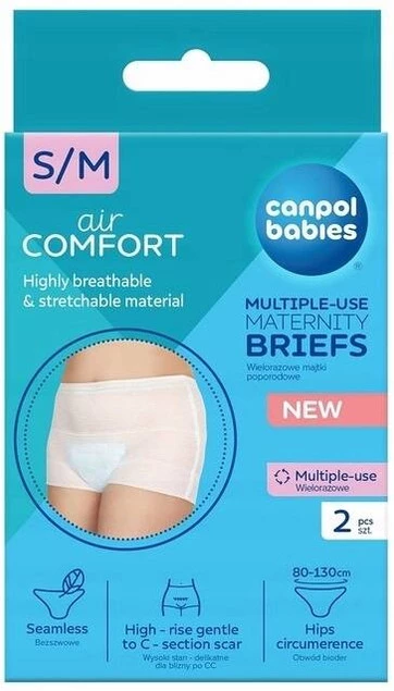 Siateczkowe majtki poporodowe wielorazowego użytku Canpol babies przeznaczone są do stosowania w okresie połogu.