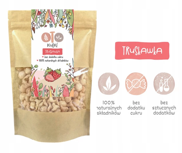 Kulki TRUSKAWKA — Witajcie w magicznej krainie Otolandii, gdzie nasze śniadaniowe płatki są prawdziwą perełką w świecie bajkowych smaków! Przedstawiamy wam nasze niezwykłe płatki w kształcie uroczych gwiazdek i kulek, które smakują jak marzenie - truskawkowe marzenie!