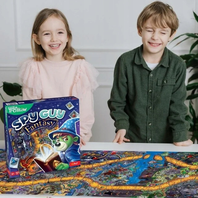 Spy Guy Fantasy to kooperacyjna gra obserwacyjna, w której liczą się bystre oko i ścisła współpraca między graczami. Planszówka jest przeznaczona dla 1-4 osób powyżej 5. roku życia, a średni czas rozgrywki wynosi 20 minut. Uczestnicy ćwiczą spostrzegawczość i umiejętność współpracy.