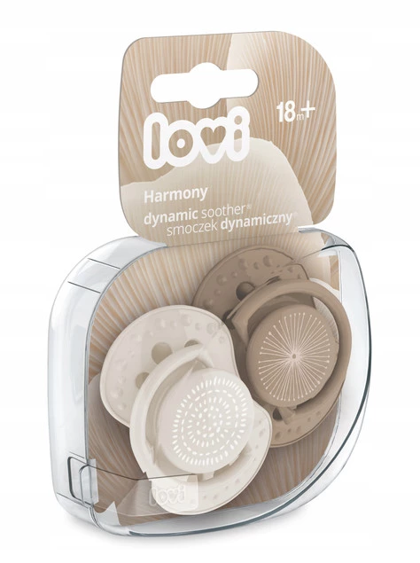 Dynamiczny smoczek uspokajający LOVI został stworzony we współpracy z neurologopedami. Ma unikalną budowę z niejednorodnego silikonu i symetryczny kształt inspirowany brodawką sutkową. Nie zaburza odruchu ssania i naturalnego rozwoju mowy i zgryzu*. Gumka smoczka jest wykonana z wysokiej jakości silikonu, który jest bezpieczny dla dziecka.