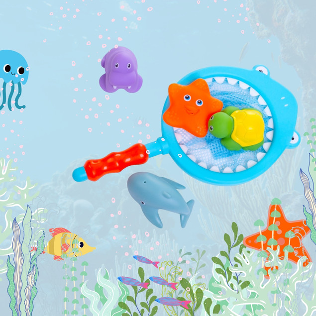 BOCIOLAND Zabawka Do Kąpieli Siateczka Do Łowienia Zabawek Zwierzątka 18M+