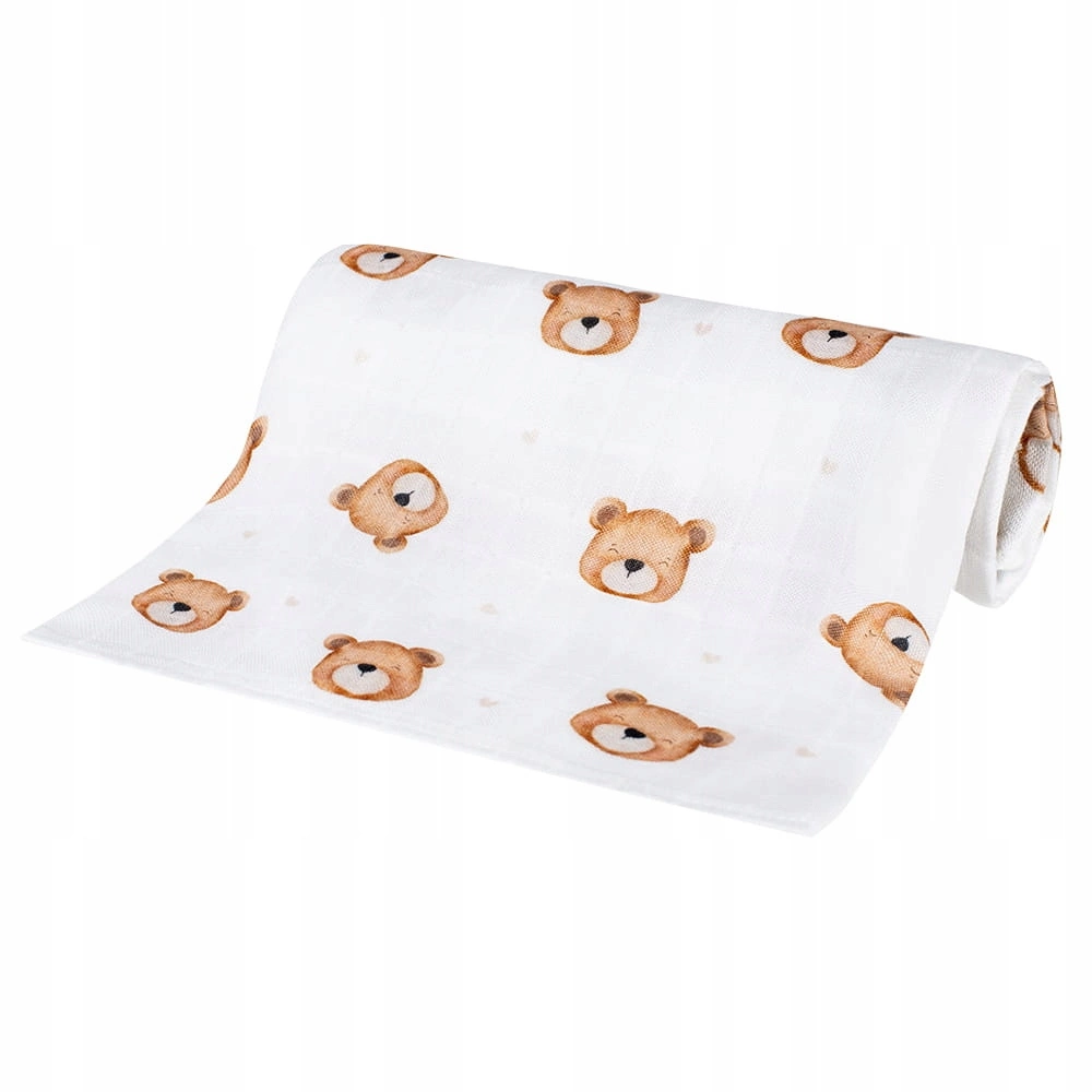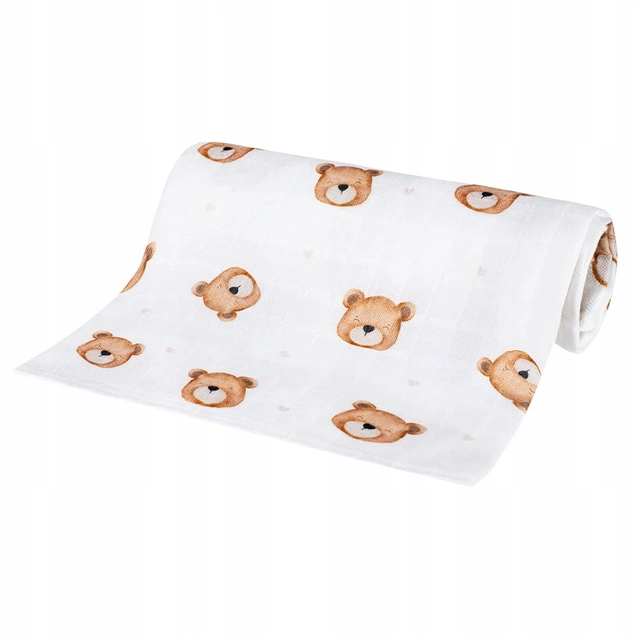 Duża pieluszka bambusowa OTULACZ dla NIEMOWLĄT w słodkie misie 75 cm x 75 cm