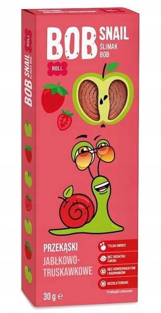 Przekąska Jabłko Malina Bez Cukrów 30g BOB SNAIL Jabłkowo-malinowe przekąski Bob Snail. Bez dodatku cukru. Zawiera naturalnie występujące cukry. WARTOŚĆ ODŻYWCZA W 100 g