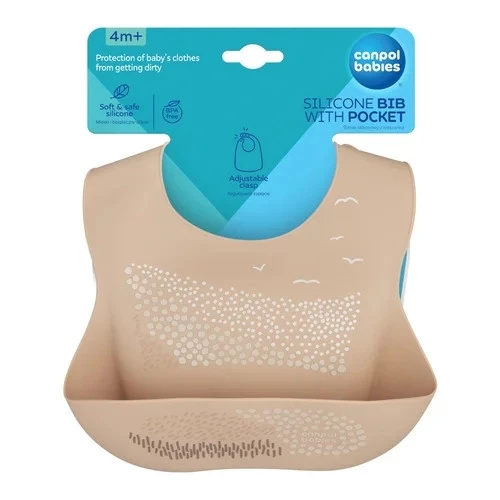 CANPOL Śliniaczek Śliniak Sylikonowy Z Kieszonką Beżowy 6M+ 51/030