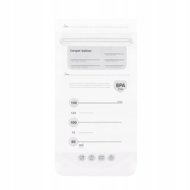 Torebki do przechowywania pokarmu Canpol babies służą do bezpiecznego przechowywania mleka w lodówce lub zamrażalniku aż do 6 miesięcy. Mleko matki powinno być przechowywane w specjalnych sterylnych torebkach, dlatego torebki do przechowywania pokarmu Canpol babies zostały poddane dokładnej sterylizacji, co zapewnia utrzymanie wysokiej jakości pokarmu i mogą być użyte natychmiast po wyjęciu z pudełka.