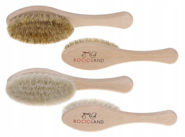 ZESTAW Drewniana Szczotka Szczotki Dla Niemowląt SZCZECINA KOZINA Bocioland