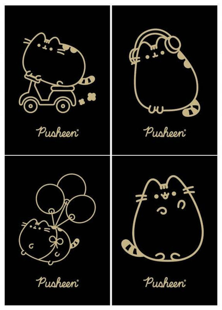 4 X ZESZYT A5, 60 KARTEK, KRATKA Z MARGINESEM, PUSHEEN BLACK, KOTEK KOT