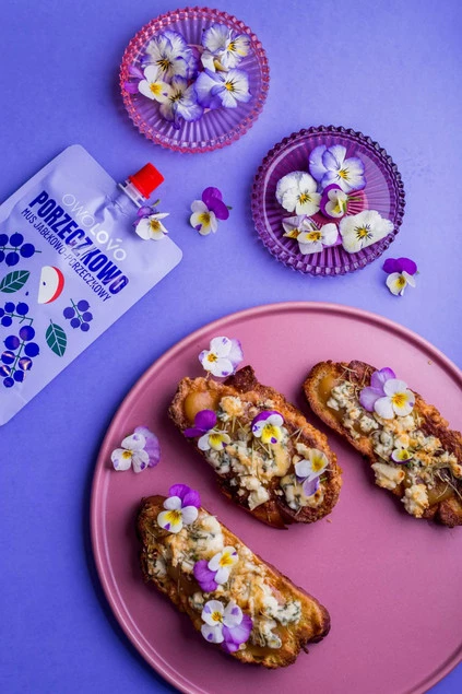 Składniki: 92% przecier z jabłek, 8% przecier z czarnej porzeczki