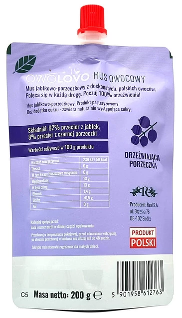 OwoLovo Porzeczkowo Mus Jabłkowo-Porzeczkowy Dla Dzieci 200g_2