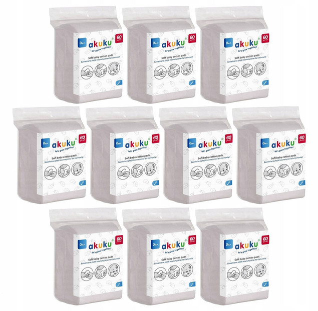 10x DUŻE Płatki Kosmetyczne Dla Niemowląt Waciki x600 0+ Akuku A0003