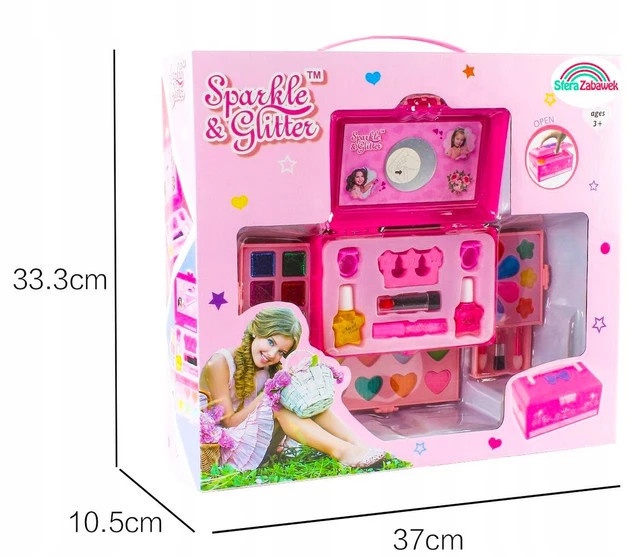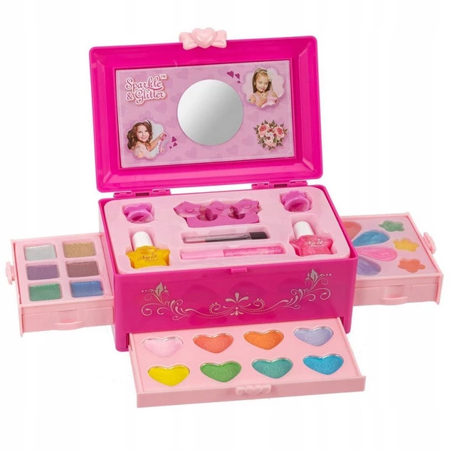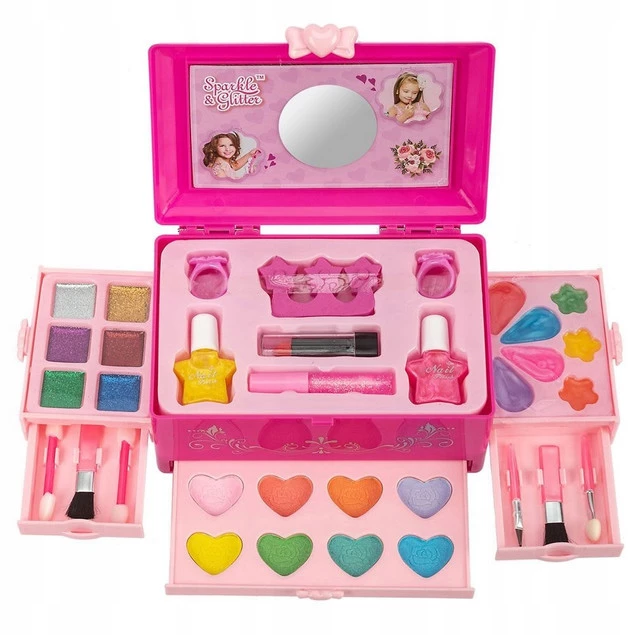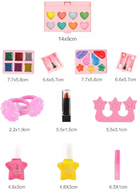 Zestaw malowideł zawiera bogatą paletę kolorów, w tym cienie do powiek, róż do policzków, pomadki, lakiery do paznokci i wiele więcej. Wszystkie produkty są bezpieczne dla skóry i łatwe do aplikacji, dzięki czemu dzieci mogą swobodnie tworzyć swoje własne przełomowe stylizacje.