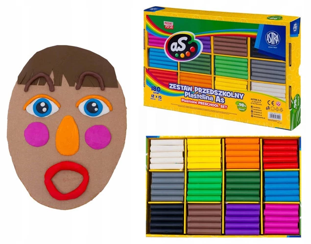 Zestaw plasteliny Astra zawiera 180 lasek plasteliny w 12 intensywnych, żywych kolorach, po 15 sztuk każdego koloru. Produkt jest idealny do zabawy, nauki modelowania oraz ćwiczeń terapeutycznych w domu, przedszkolu i szkole. Plastelina jest miękka, elastyczna i nie klei się do rąk, co ułatwia modelowanie nawet najmłodszym dzieciom.