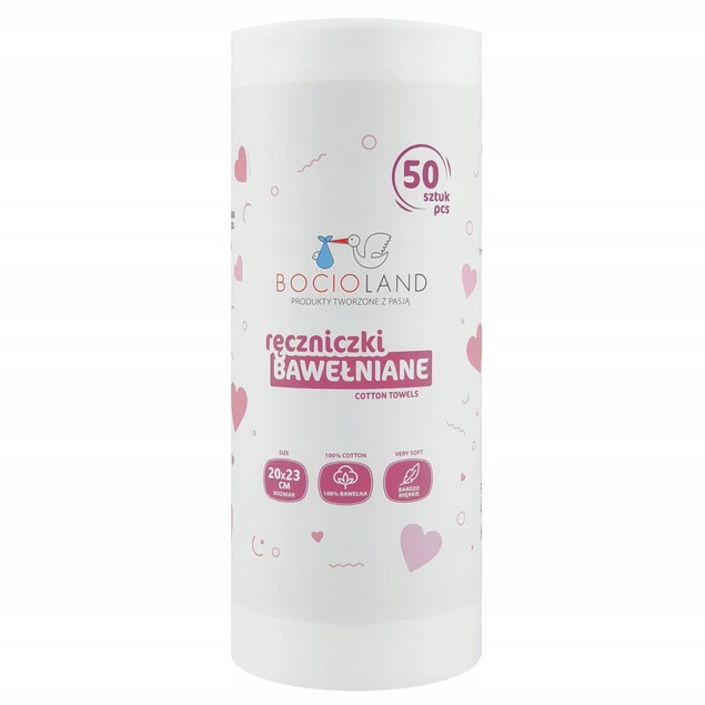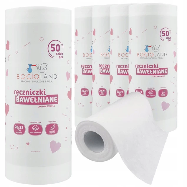 BAWEŁNIANE RĘCZNIKI DLA NOWORODKÓW niemowląt rolka 20x23cm 50szt. BOCIOLAND