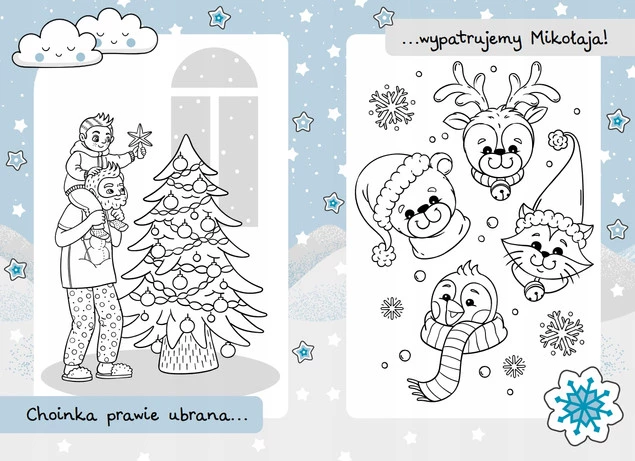W tym zeszycie znajdziecie zimowe malowanki – pełne szczegółów i różnorodnych kształtów kompozycje do kolorowania. Wystarczy dobrać do nich odpowiednie barwy, by powstały obrazki przepełnione magią świąt. Mikołaj z pewnością doceni dzieła młodych artystów!