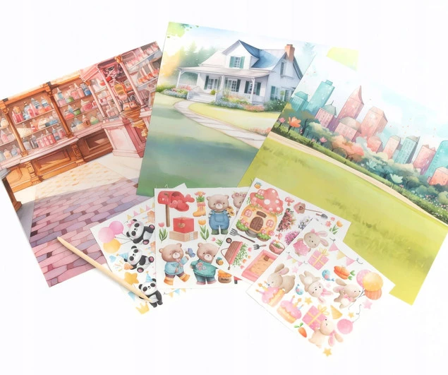 - 3 plansze ze sceneriami do naklejania