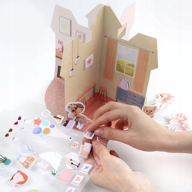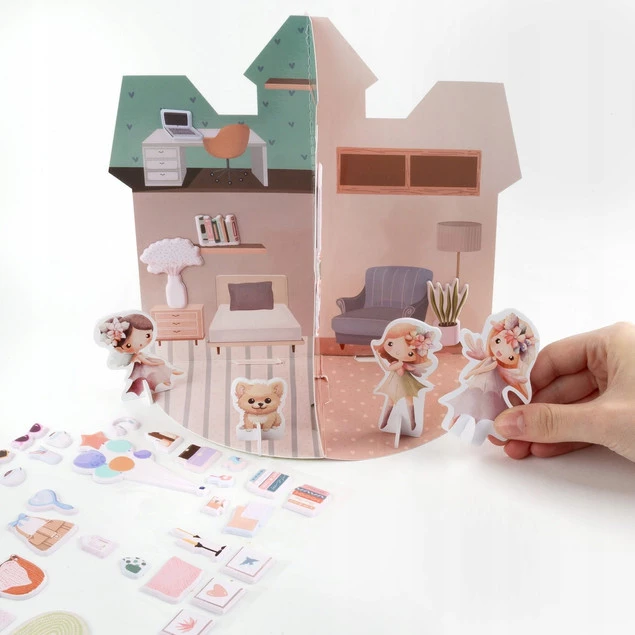 Złóż zapytanie o cenę hurtową produktu |KIDEA Zestaw Kreatywny Domek 3D Dla KSIĘŻNICZEK 52 Naklejki 4 Figurki 3+