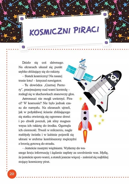 Przedstawiamy książeczkę, która z pewnością spodoba się każdemu chłopcu! Znajdują się w niej krótkie, ciekawe opowieści, pełne motywów i tematów uwielbianych przez małych czytelników - fascynujące historie o przygodach piratów i astronautów, o olśniewających bitwach i walkach, o wspaniałych zwycięstwach dobra nad złem. Są tu więc odważni piraci, śmiali astronauci, dzielni rycerze, źli czarownicy, magowie, kosmici, a także zwyczajni chłopcy. Najważniejsze jednak, że wszystko zawsze dobrze się kończy! Maluchy nie będą mogły rozstać się z tą książką!