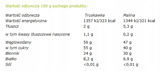 - Naturalna posypka: to 100% owoców w postaci pyłu - nie mają dodatku cukru, stanowią doskonałą alternatywę dla tradycyjnych słodkich posypek.