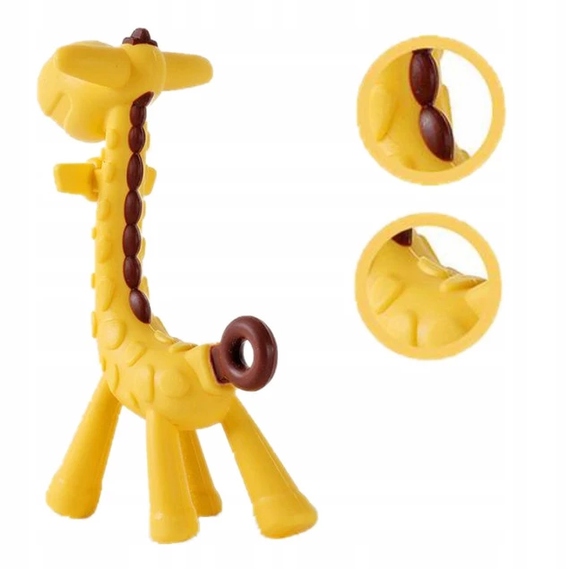 - Silikonowy gryzak Bocioland w kształcie żyrafki na bolesne ząbkowanie dla niemowląt 3m+. Miękki silikon bez BPA, różne faktury, ergonomiczny kształt, certyfikaty CE i EN 71 – ulga dla dziąseł i rozwój zmysłów maluszka.