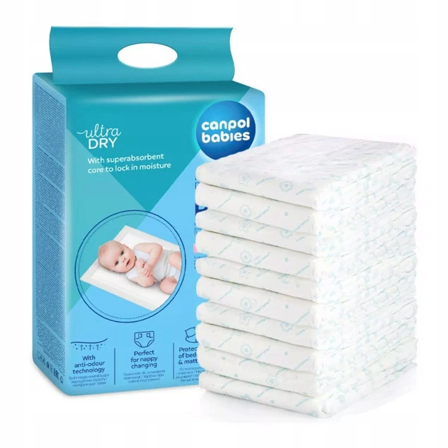 Wielofunkcyjne podkłady higieniczne Canpol babies z wodoodporną warstwą ochronną na spodzie podkładu doskonale sprawdzają się w wielu sytuacjach. Superchłonny wkład szybko wchłania płyny i zatrzymuje wilgoć wewnątrz podkładu. Podkłady higieniczne są niezbędne dla kobiet w okresie połogu. Przydają się podczas przewijania Maluszka, w podróży, podczas wizyty w przychodni czy jako zabezpieczenie materaca (przeciekająca pieluszka, ulewanie itd.) oraz w nauce odpieluchowania.