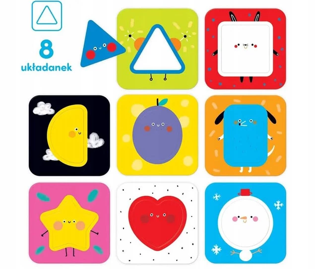 Edukacyjny zestaw sprawdzi się jako pierwszy puzzlowy sorter kształtów dla malucha. Składa się z dużych tabliczek z wyjmowanymi elementami. Zabawa polega na dopasowywaniu wyjmowanych kolorowych elementów o różnych kształtach. Formę puzzli i kolorowe ilustracje dopasowaliśmy do wieku maluchów. Układanie puzzli to edukacyjna i wszechstronnie rozwijająca zabawa.