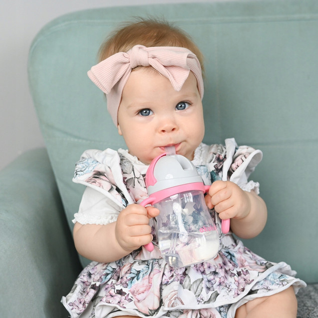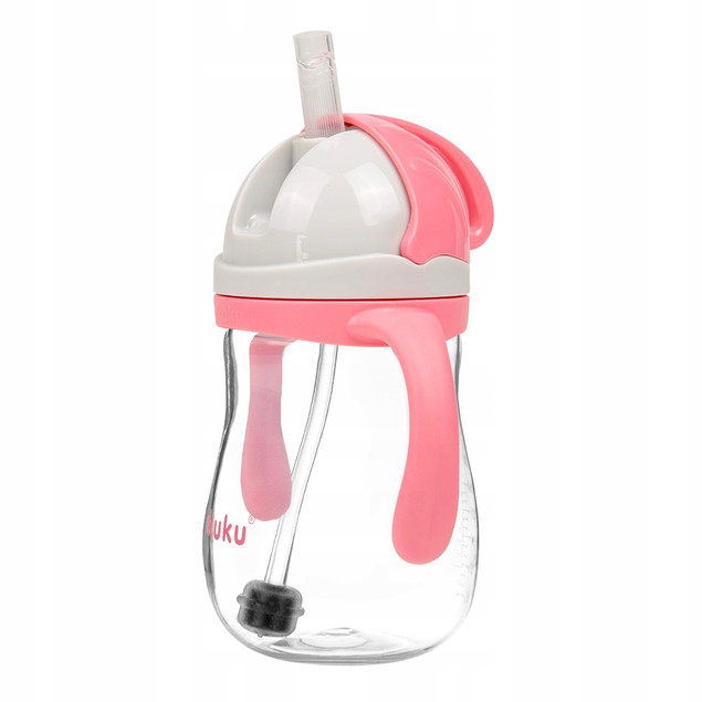 AKUKU Kubek Niekapek Z Obciążoną Słomką RÓŻOWY PASTEL 9M+ 280 ml A0676