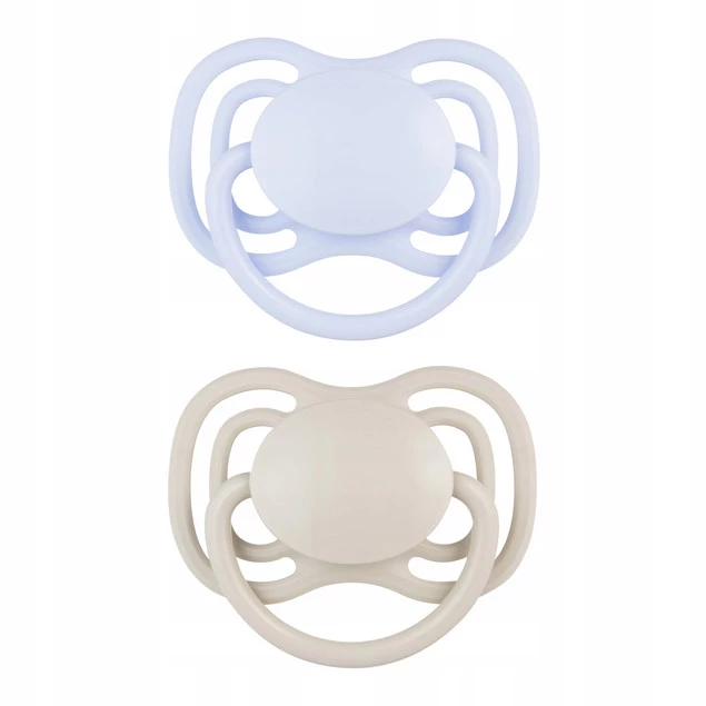 Tarczka zapewnia maksymalny dopływ powietrza, dzięki czemu zapobiega podrażnieniom na delikatnej buzi dziecka i minimalizuje ryzyko odciskania się smoczka. Specjalnie zaprojektowany kształt tarczki ułatwia również swobodne oddychanie i połykanie śliny.