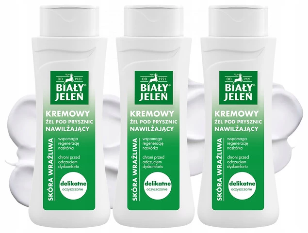 3x BIAŁY JELEŃ Kremowy Żel Pod Prysznic Nawilżający 300 ml Hipoalergiczny_1