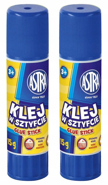 2x Klej w Sztyfcie Szkolny Biurowy ZMYWALNY BEZBARWNY 3+ Astra 15g