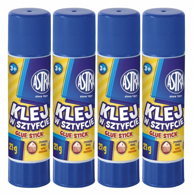 4x KLEJ W SZTYFCIE 21g Szkolny Biurowy Mocny Zmywalny Bezbarwny 3+ Astra