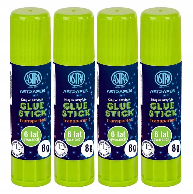 4x KLEJ W SZTYFCIE Szkolny Biurowy Mocny Zmywalny Transparentny 8g 3+ Astra