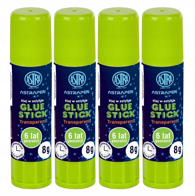 4x KLEJ W SZTYFCIE Szkolny Biurowy Mocny Zmywalny Transparentny 8g 3+ Astra_1