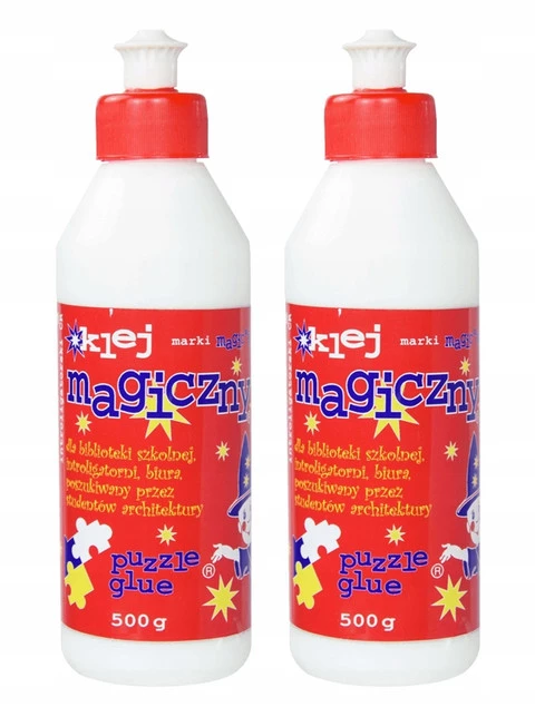 Klej czarodziejski, zmieniający po wyschnięciu kolor z białego na transparentny.