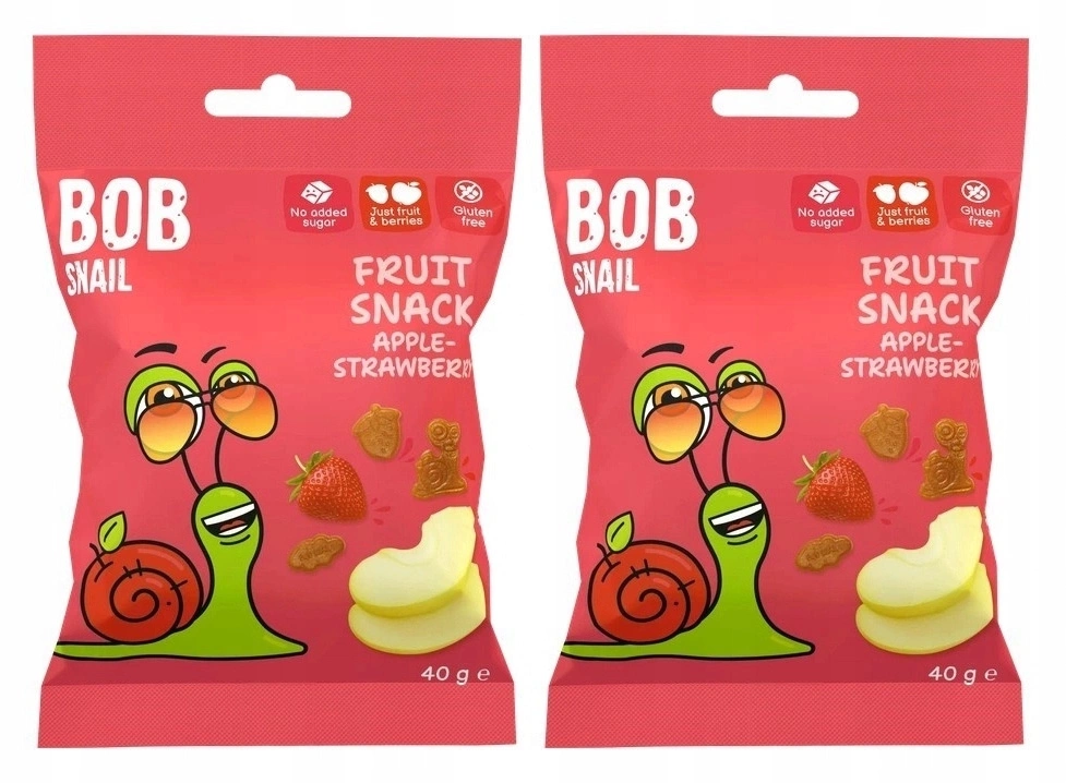 2x BOB SNAIL Żelki Owocowe JABŁKO TRUSKAWKA Bez Dodatku Cukru 2x 40g (80g)