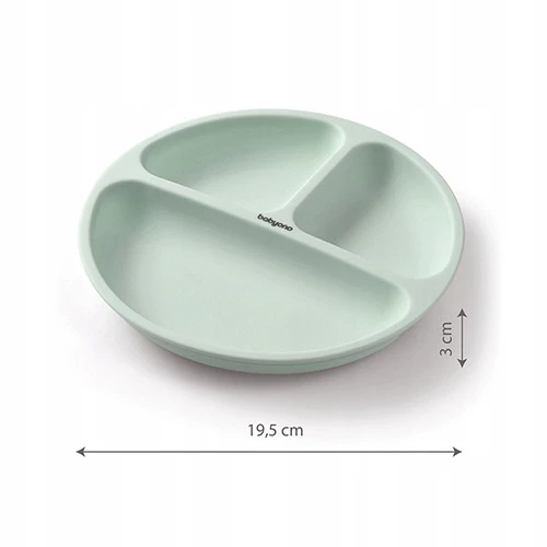 Talerzyk z przyssawką to idealne rozwiązanie podczas nauki samodzielnego jedzenia. Przyssawka minimalizuje ryzyko rozlania lub przewrócenia jedzenia. Ergonomiczny kształt ułatwia samodzielne nabieranie pokarmu.Trzy praktyczne przegródki zachęcają do zróżnicowanego jedzenia. Wykonany z wysokiej jakości silikonu, talerzyk jest bezpieczny dla zdrowia i łatwy w czyszczeniu. Można go myć w zmywarce i podgrzewać w mikrofalówce.