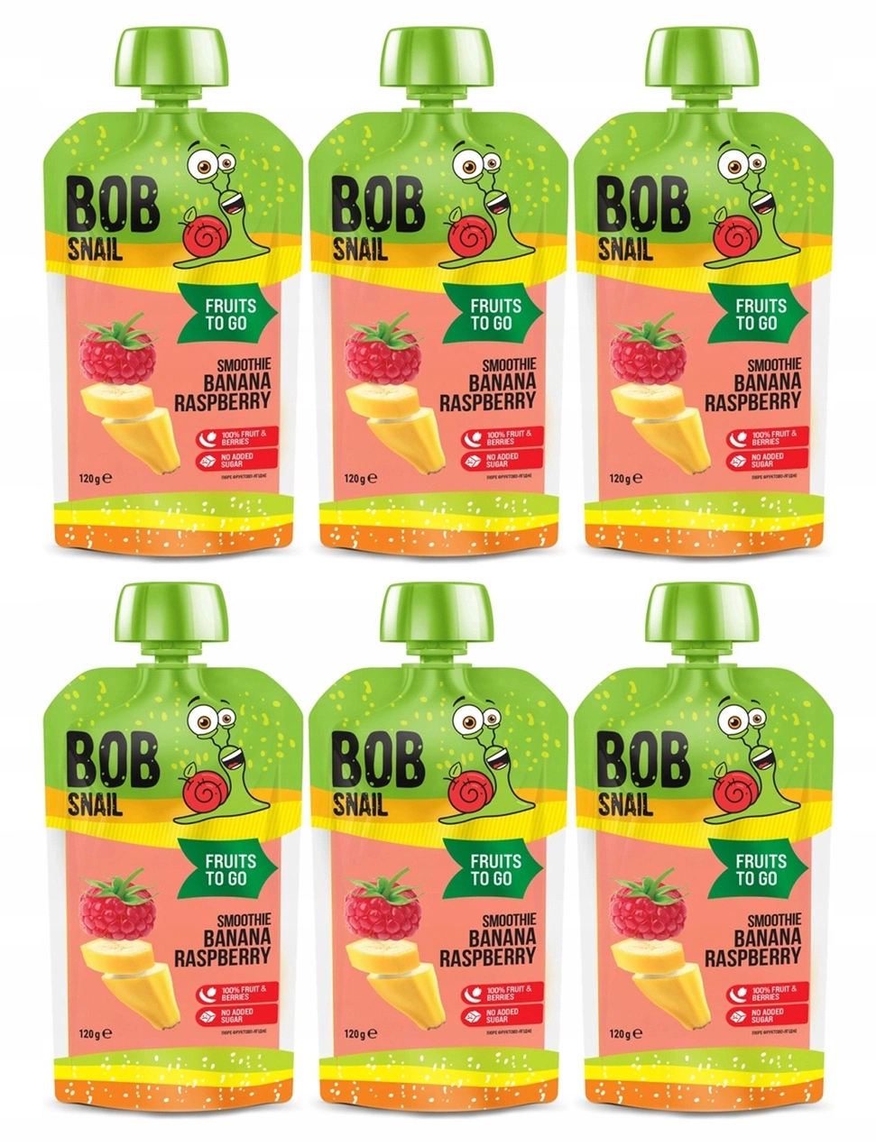 6x BOB SNAIL Smoothie BANAN MALINA Bez Dodatku Cukru Mus 120g