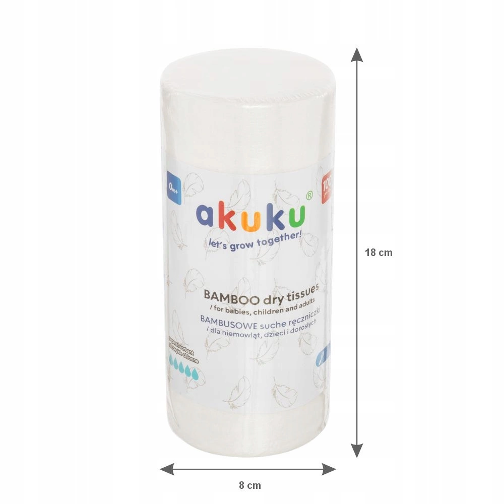AKUKU Hipoalergiczne Ręczniki Chusteczki BAMBUSOWE Jednorazowe 100szt A0687