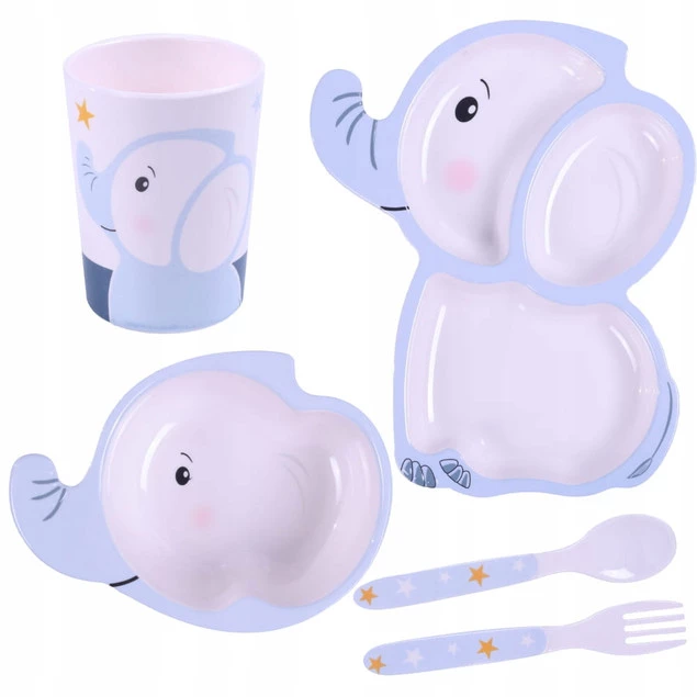 BOCIOLAND Zestaw Naczyń Dla Dzieci 5 Elementów SŁONIK Dla Maluszka