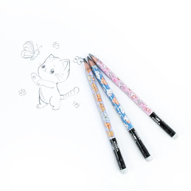 KIDEA Ołówek Trójkątny z Gumką HB ZWIERZĄTKA Kotek Piesek Miś