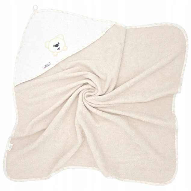 - Uroczy kaptur z haftem: Kapturek nie tylko chroni wilgotną główkę dziecka przed wychłodzeniem, ale także dodaje uroku dzięki starannie wykonanemu haftowi w kształcie uroczego misia. Każdy szczegół jest dopracowany, aby spełniać oczekiwania nawet najbardziej wymagających rodziców.