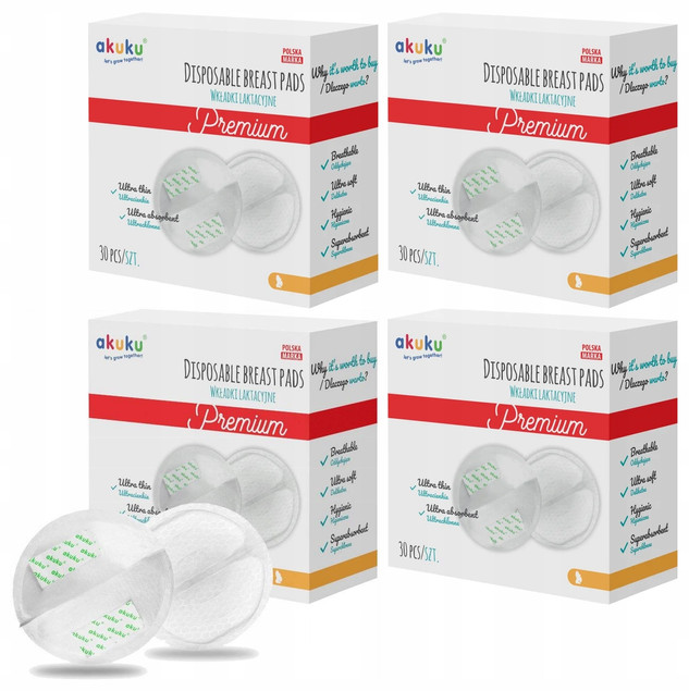 4x Wkładki Laktacyjne Ultra Cienkie Chłonne 30szt. Akuku A0354
