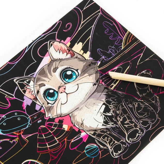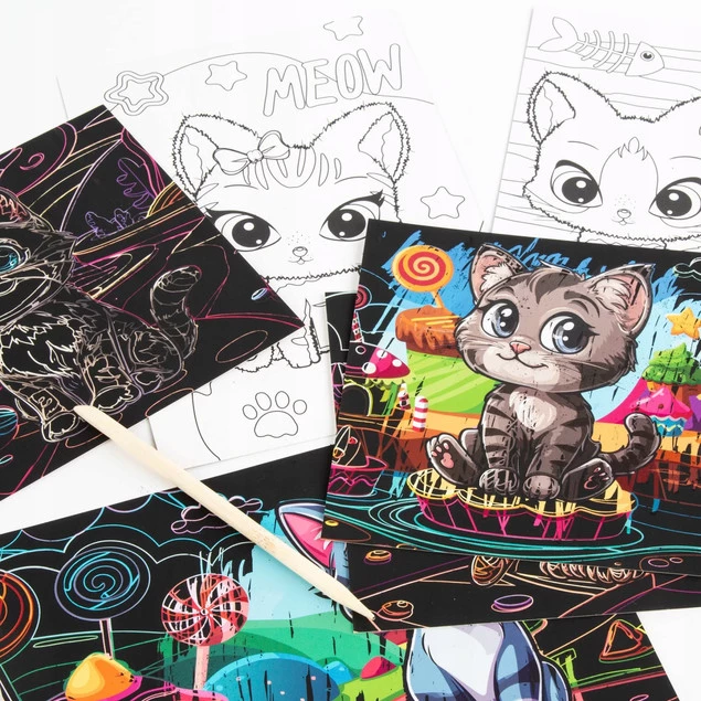 Złóż zapytanie o cenę hurtową produktu |Wydrapywanka z Kolorowanką KOTKI 6 Arkuszy z Rysikiem Kidea