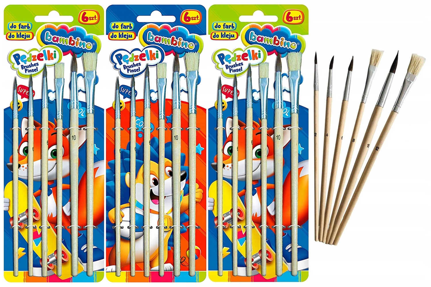 3x Bambino Pędzle Pędzelki Szkolne Zestaw Do Farb 6 Sztuk Bambino