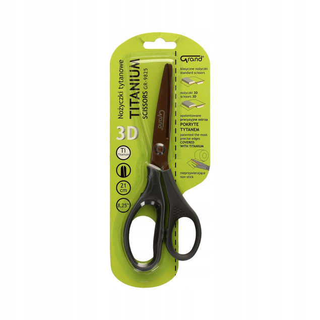 Nożyczki tytanowe Grand GR-9825 to uniwersalne narzędzie, które doskonale sprawdzi się w biurze, domu, przy pracach plastycznych, a także w szkolnym wyposażeniu starszych uczniów.