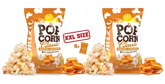 Najstarsze znane wzmianki o popcornie pochodzą z Meksyku i sięgają nawet 5600 lat wstecz. Czy odkrycie popcornu było dziełem przypadku? Tego nikt nie wie. :-) Mixit popcorn ze słonym karmelem jest jednak efektem starannie dobranych składników. Każde wystrzelone ziarenko kukurydzy zostało doprawione tak uwielbianym przez wszystkich słonym karmelem. To popcorn, który błyskawicznie wprawi Cię w karmelowy nastrój!
