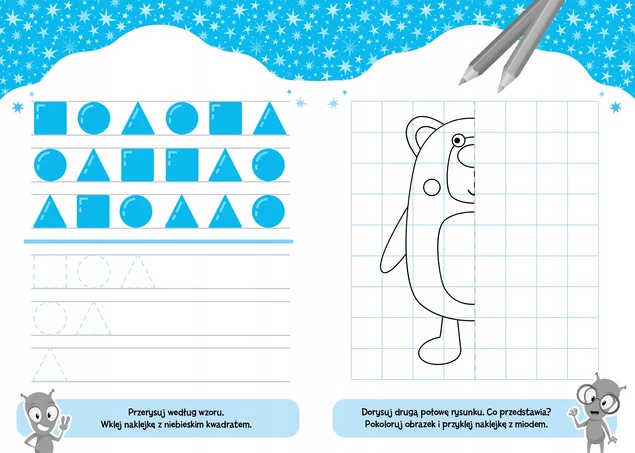 Ten kosmiczny zeszyt ćwiczeń pomoże najmłodszym w rozwijaniu spostrzegawczości, logicznego myślenia, sprawności manualnej i orientacji przestrzennej. Zadania są dostosowane do możliwości poznawczych dziecka, a kolorowe naklejki uatrakcyjnią zabawę!