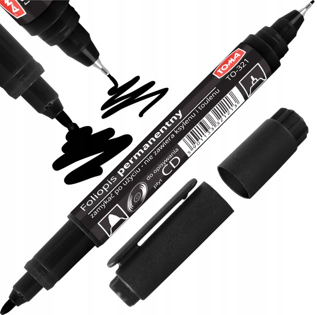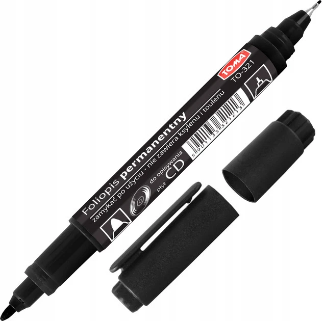 Złóż zapytanie o cenę hurtową produktu |Dwustronny marker permanentny, foliopis, czarny | Toma