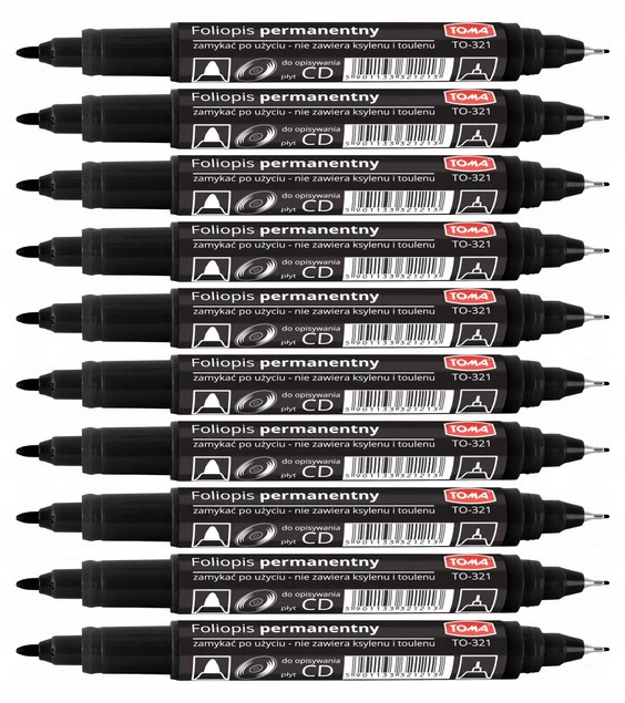 10x Marker Pisak Do Płyt CD DVD Toma TO-321 Dwustronny CZARNY