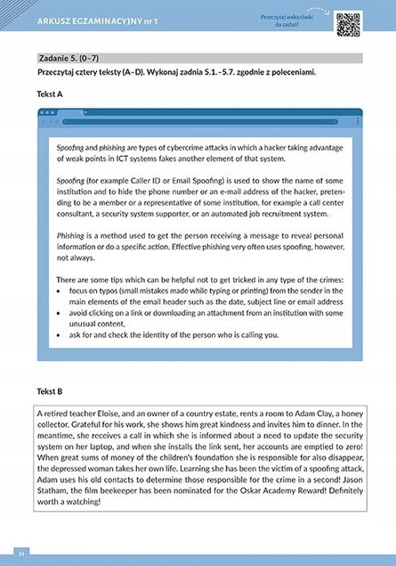 Ponadto, po zeskanowaniu kodów QR, uzyskasz dostęp do dodatkowych materiałów, takich jak nagrania i transkrypcje, klucz rozwiązań do każdego arkusza. Arkusze przygotowane przez doświadczonych nauczycieli języka angielskiego, związanych z Wydawnictwem GREG, to nieoceniona pomoc w przygotowaniach do egzaminu maturalnego.
